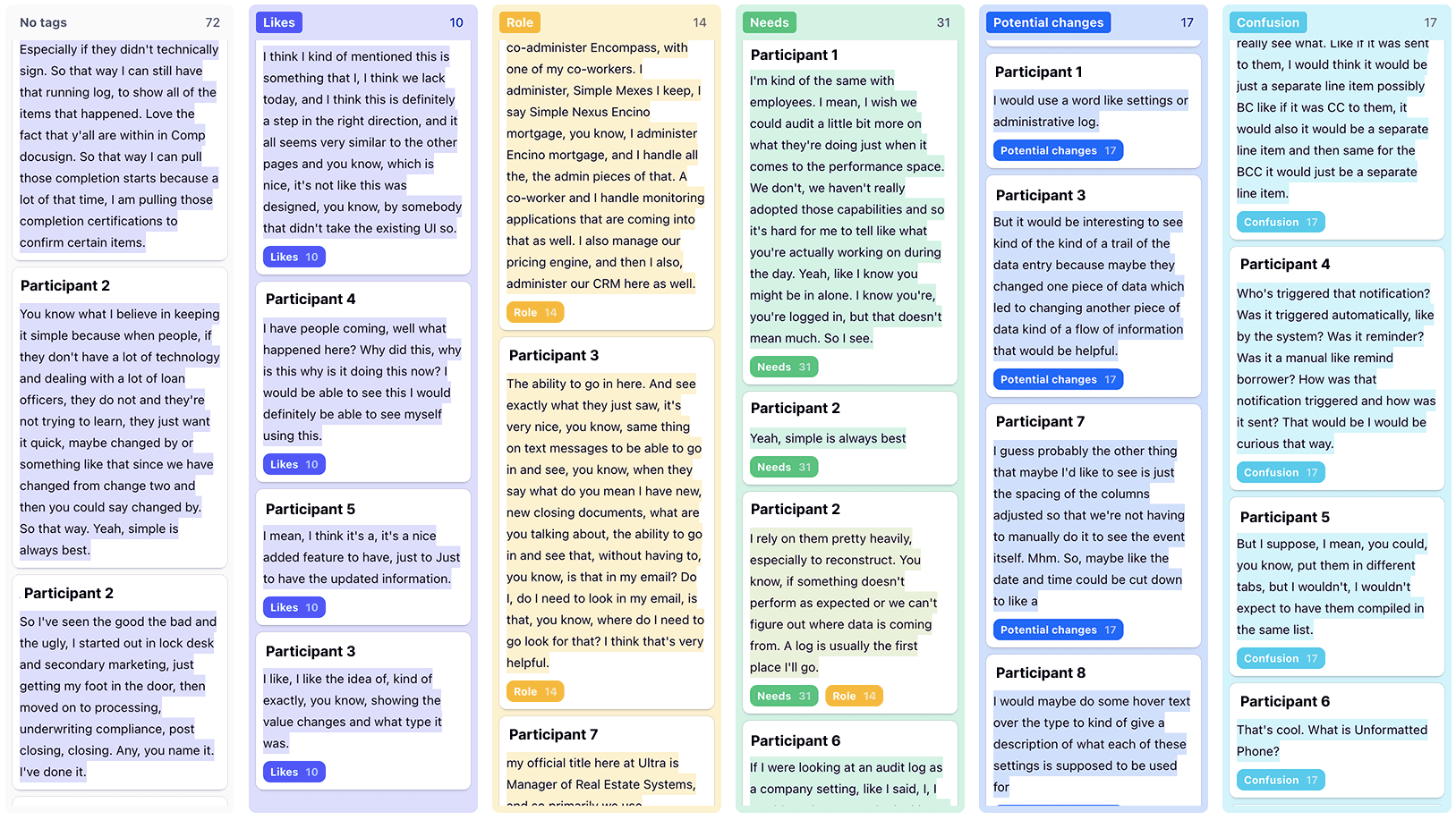 A screenshot of a handful of user tests I tagged.